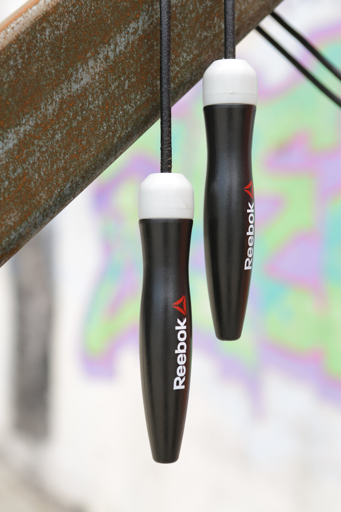 The weighted Reebok Leather Skipping Rope is a slightly heavier, more robust option with a thicker cord which is less likely to tangle. Added 100 g weights in each handle make it ideal for building upper body strength.