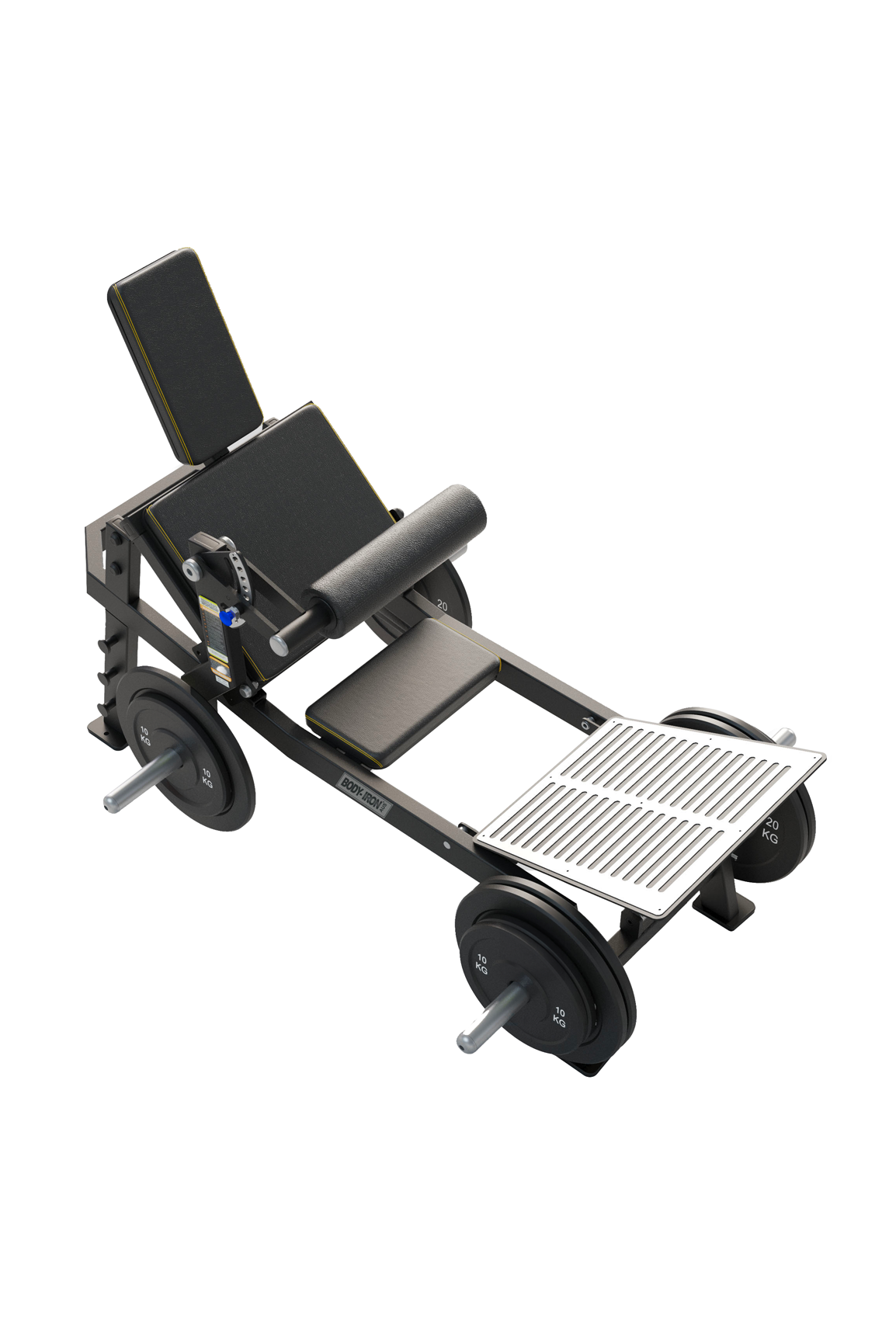 The Body Iron Commercial Pro Hip Thrust focuses on the glute muscles and simulates the most popular free weight glute training paths. Ergonomic pelvic pads provide secure and comfortable support for training start and end. The traditional bench is replaced by a wide back pad, which greatly reduces the pressure on the back and improves the comfort and stability.